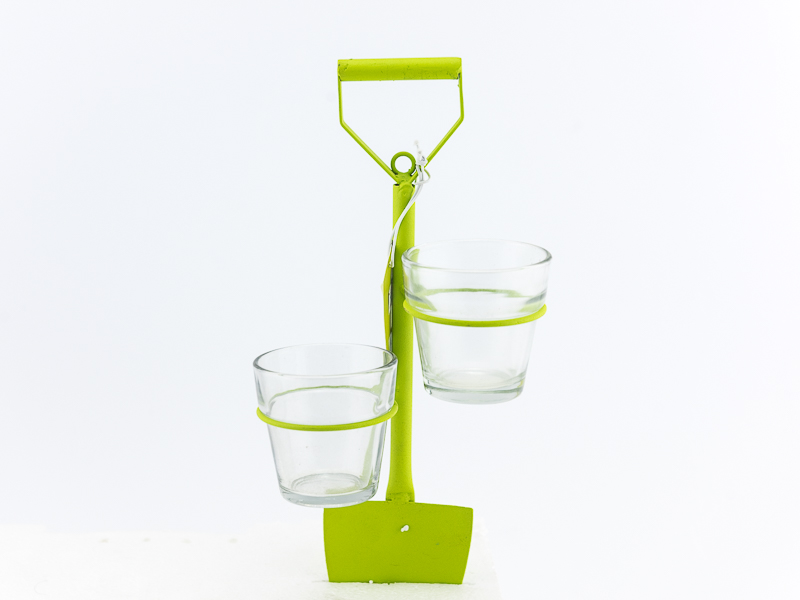 Metalna lopata sa staklenim uvlakama za sveće.